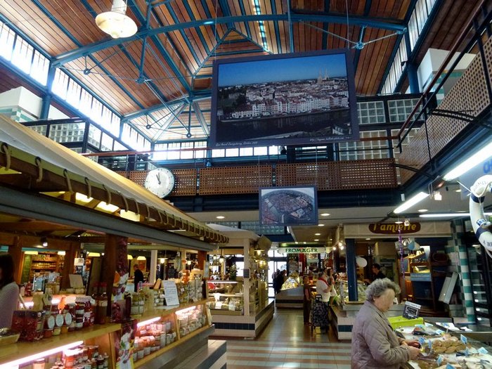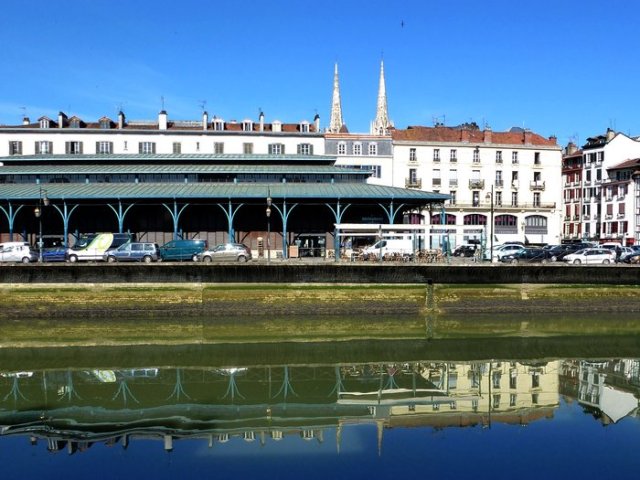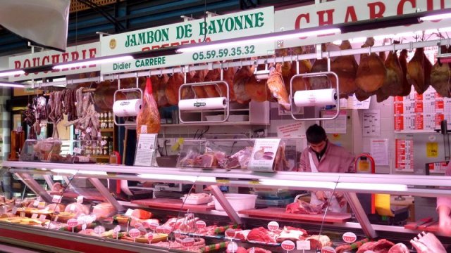 Walking in the French Basque capital :Bayonne, les Halles, gastronomy,